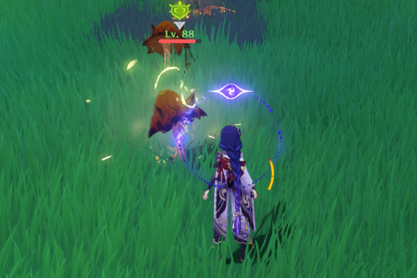 Stimulation est représenté sous formes d'éclairs verts sur les ennemis et garde le Dendro en tant qu'élément posé.